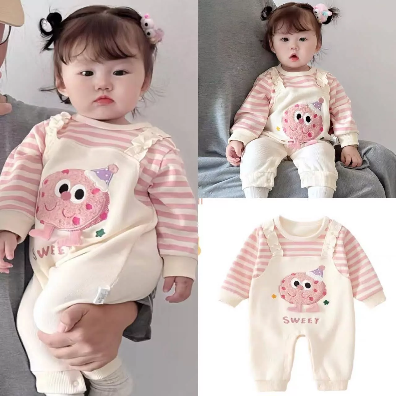 粉紅甜餅乾長袖爬服