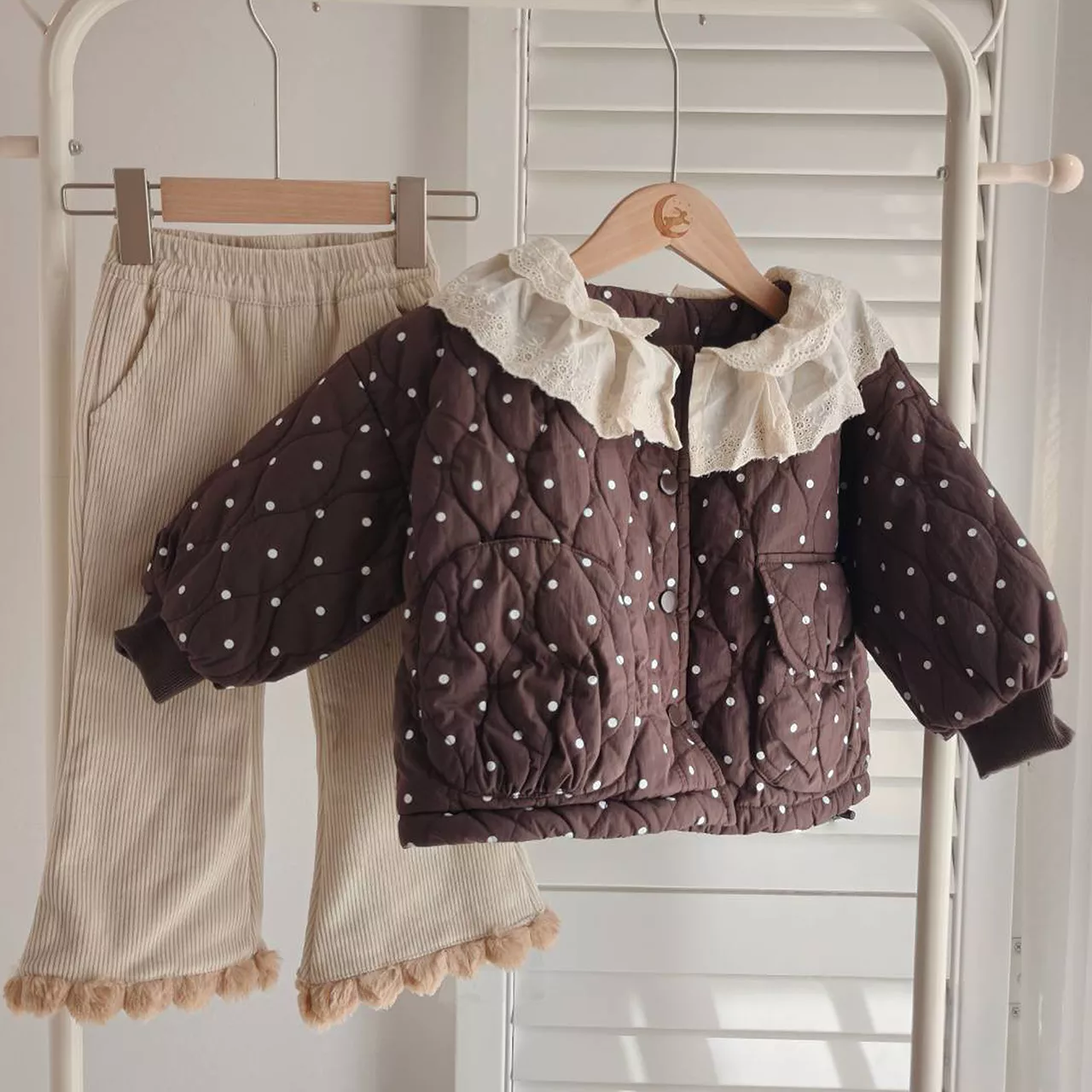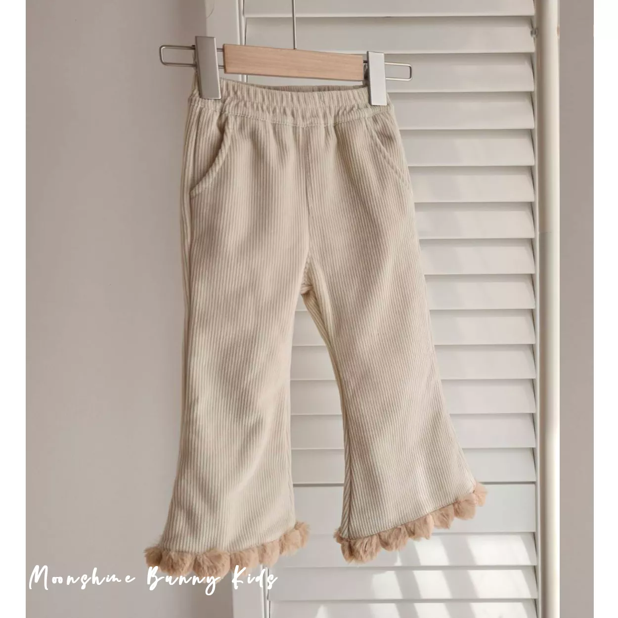 燈芯絨雲朵內刷絨喇叭褲 (杏)