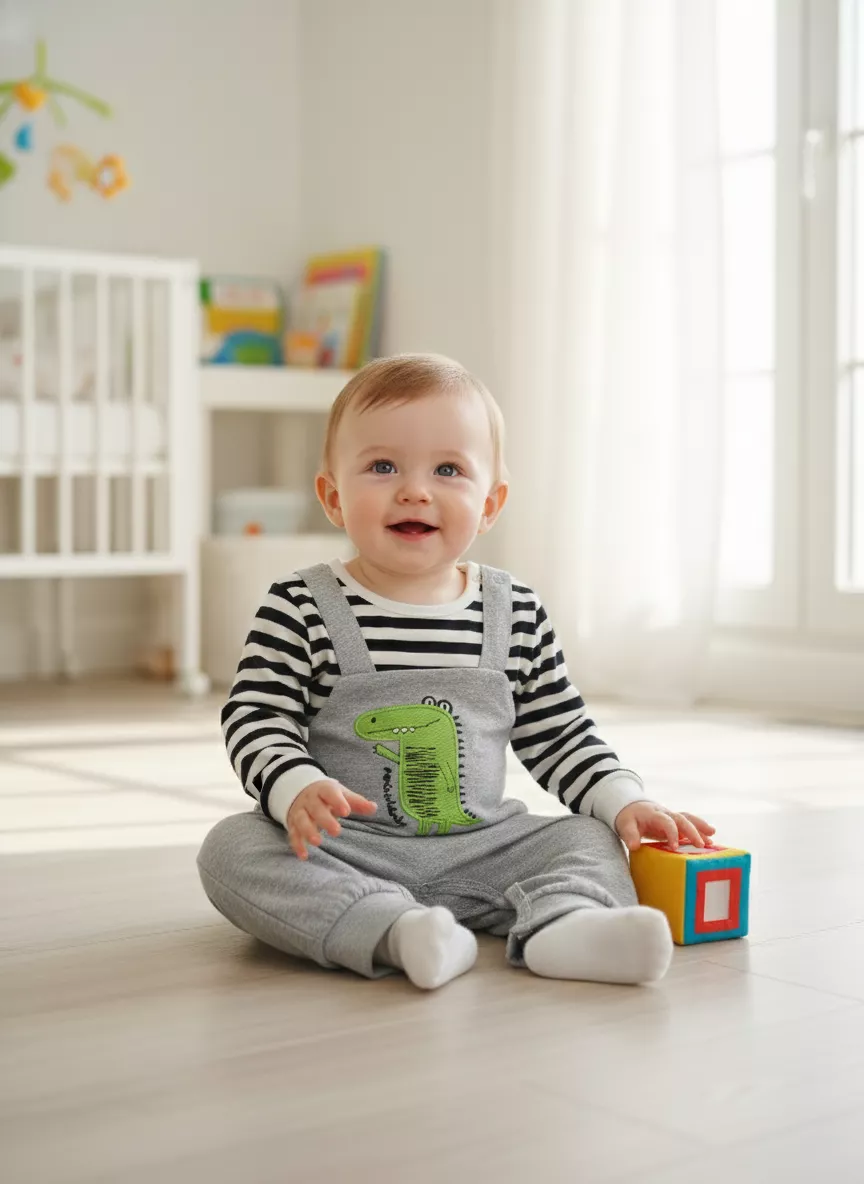小鱷魚假兩件連身爬服